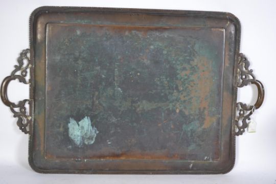 A large finely decorated Moradabad salver tray having twin handles, central medallion with scroll work decoration