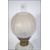 An early 20th century brass and ceramic oil lamp raised on a claw feet base and scroll work handles having a painted ceramic body depicting storks holding the glass reservoir. Complete with a segmented/ridged etched glass shade and flume. Messengers No.2 to pusher. Measures 71cms high.