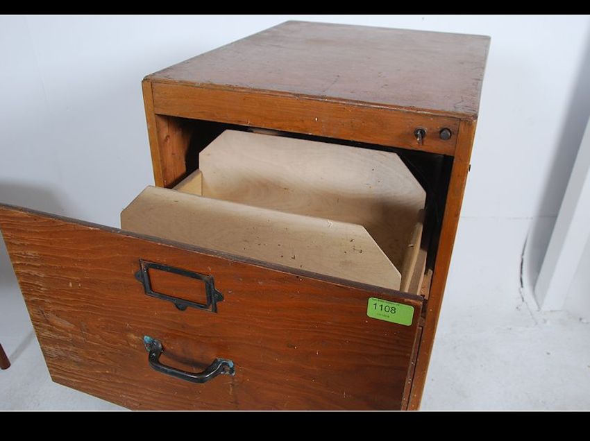 A mid 20th century Air Ministry four drawer oak panelled office filing cabinet. Each drawer being fitted with suspension rails. Stamped to the rear AM 1943. Measures: 131cms high x 51cms wide x 65cms deep.