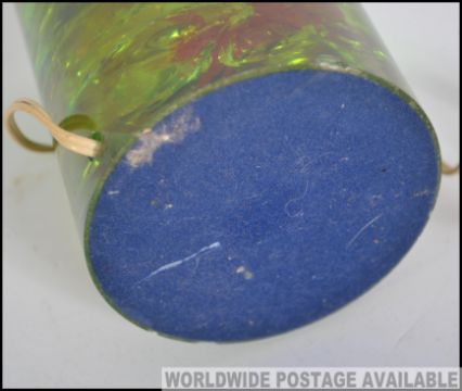 A retro 1960's Shatterline crackle table lamp in green with electric mount atop. Measures: 23cms high.