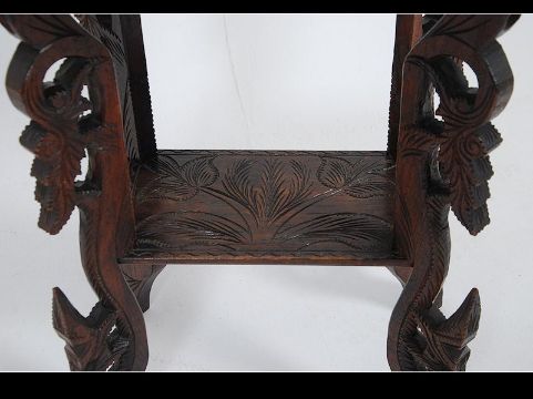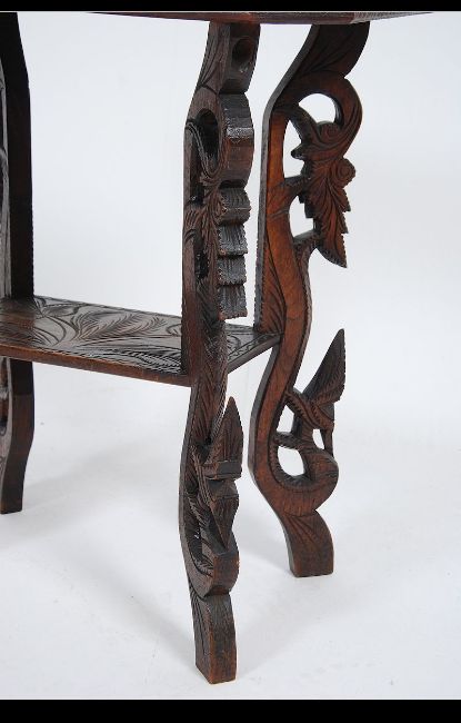 An early 20th century Chinese carved hardwood occasional table raised on griffin leg supports with carved detailed table top. Measures: 66cms high x 62cms wide x 38cms deep.