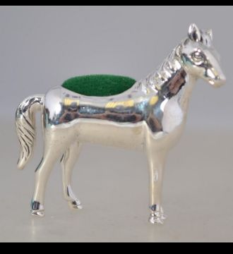 A sterling silver pin cushion in the form of a horse having green velour pin cushion. Weight 18.5g