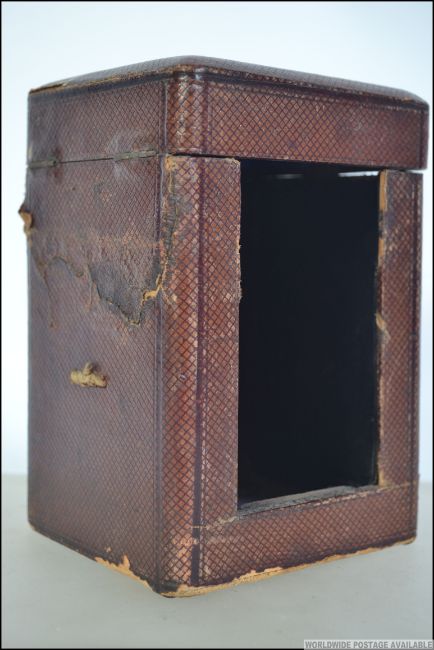 A 19th century leather case for a carriage clock with hinged top and open window recess to the front. Measures: 18cms high.