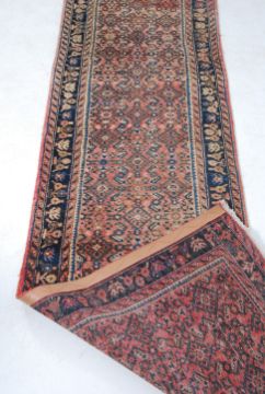 A 20th century Iranian - Persian hand woven runner rug with central large run of medallions with red ground and scrolled borders
