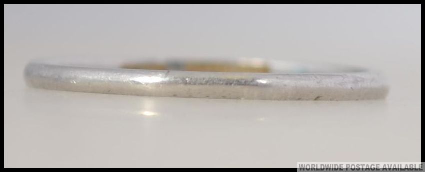 A platinum band ring of ribbed design. The inside shank stamped platinum, makers WW Ltd. Size Q.5 / Weight 2.1g