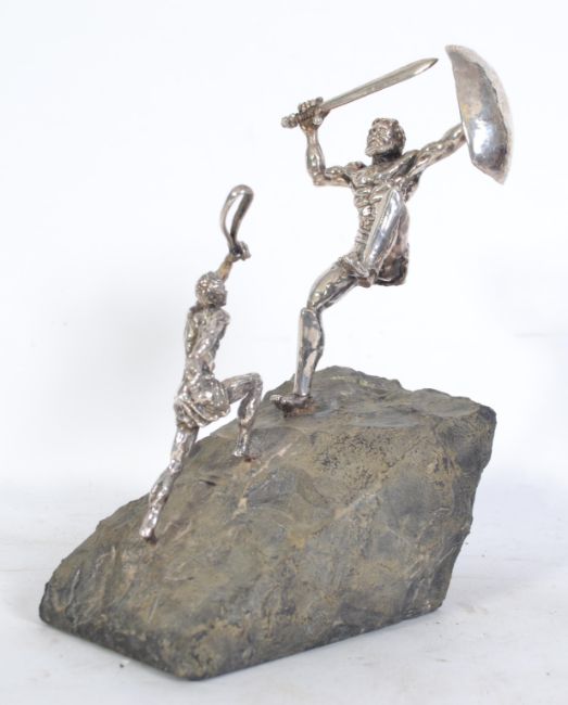 A 20th century Yaacov Heller Israel Sterling over Wax Jewish Judaica David Goliath Sculpture