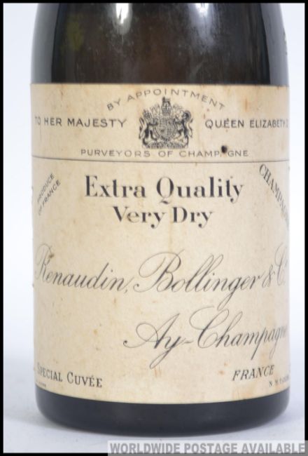 A vintage 20th century half bottle of Extra Quality Very Dry Renaudin Bollinger & Co Champagne. Measures: 26cms high.