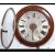 A Victorian mahogany postman's clock with round face and convex glass together with twin lead weights and swing pendulum. Measures: 30cms diameter x 20cms deep.