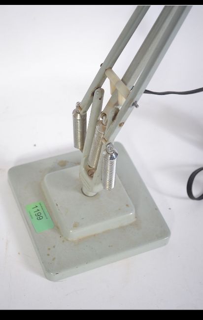 A mid century Herbert Terry 1227 model anglepoise desk lamp with square terraced base and pendant shade in the original blue / grey colour. Measures: 89cms high.