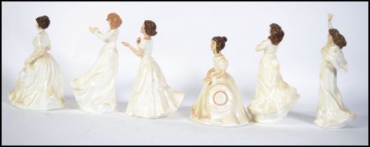 A collection of six Royal Doulton Bone China figures to include ' Au Revoir ' HN3729, ' Forget Me Not ' HN3388, ' Thank You ' HN3390, ' Harmony ' HN4096, ' Amanda ' HN3635 and ' Welcome ' HN3764 all boxed.