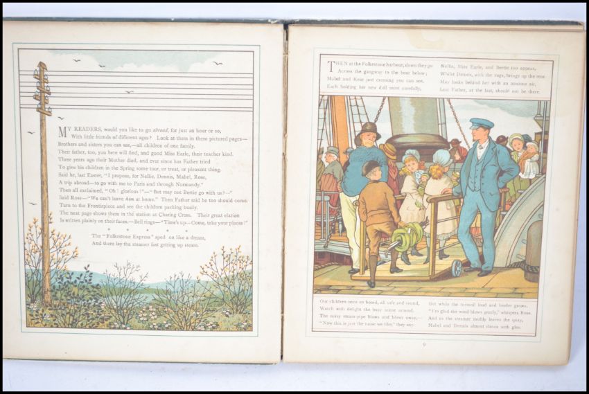 A charming Victorian children's book - 'Abroad' by Thos. Crane and Ellen Houghton. Published by Marcus Ward & Co, London, 1882. Full colour pictorial boards and beautifully illustrated throughout. 56 pages.