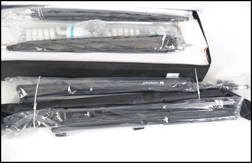 A complete photographic studio set up being new and unused to include tripods, backgrounds etc