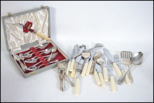 A collection of silver plated items together with silver plated flat ware along with a silver believed Irish hallmarked spoon