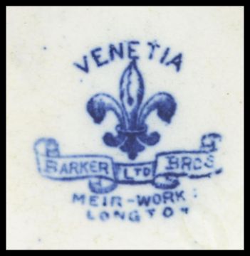A pair of blue and white baluster vases with classical scenes in the Venetia pattern by Barker Bros Longton Staffordshire. Measures 23cms high.