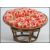 A retro 1970's bamboo pod chair having chintz upholstered large cushion on bamboo cage and base that adjusts - swivels move to position. Measures: 90cms high x 116cms wide x 101cms deep.