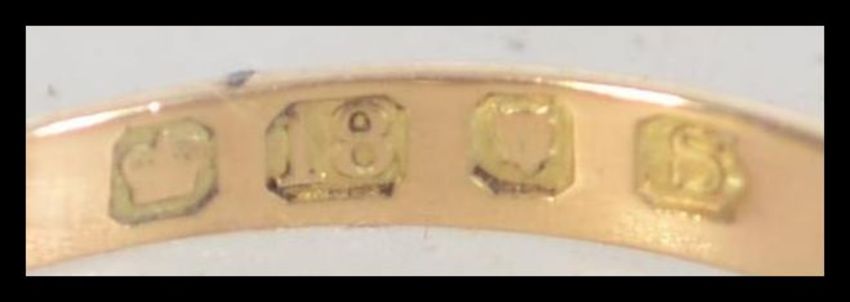 A hallmarked 18ct gold Victorian 5 stone diamond ring set with 5 old cut diamonds of approx 1.2cts. Hallmarked for London. Size P. Total weight 3.9g.