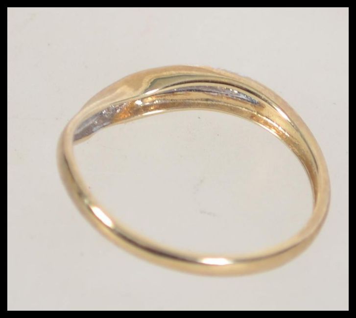 A 9ct gold and diamond band ring. Diamond approx 13pts. Size U.5.
