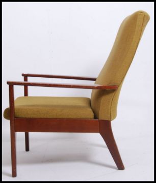A vintage mid century Parker Knoll armchair model no PK988 The chair with squared legs and shaped elbow rests having upholstered seat and back rests. Stamped to the underside