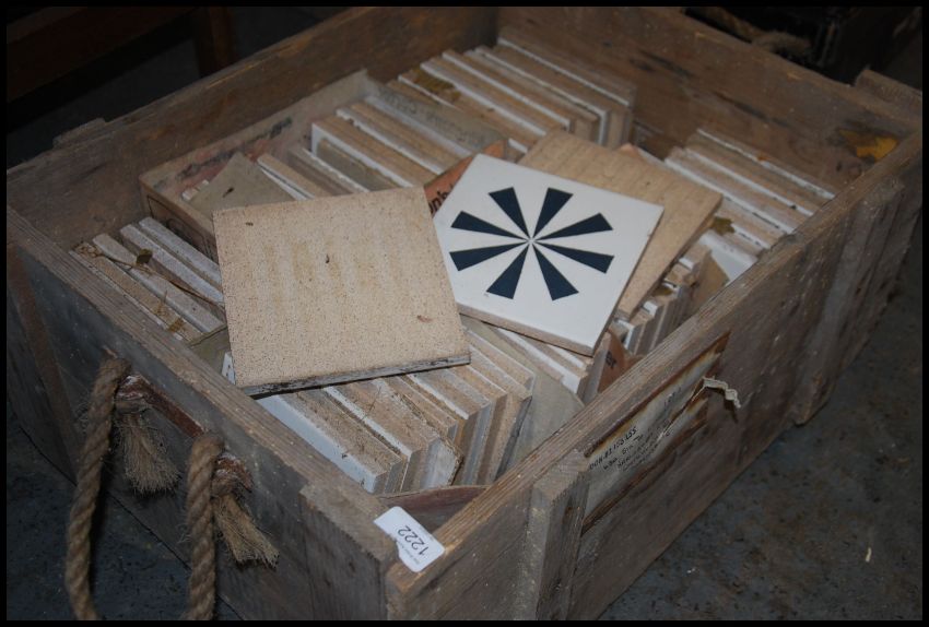 A large collection of decorative ceramic glazed tiles with geometric designs by Carter Pilkington
