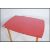 A vintage retro mid 20th century kitchen dining table having a red formica top raised on tapered legs.