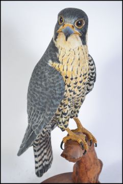 A large and impressive hand carved and crafted black forest inspired study of an American Eagle being raised on a mahogany plinth base. This beautifully carved and painted by M. Williams of Newport being part of an extensive collection of wooden crafts, figures and models in this sale. Measures 50cms high.