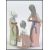 Two Lladro girls one hatted and leaning forward wearing a green dress. The other is standing upright wearing a pink dress and holding a cream hat with a blue bow. There is another smaller younger girl figurine from Nao by Lladro.