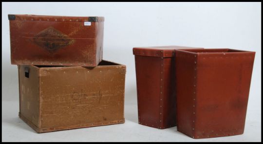 A group of vintage industrial mid 20th century storage bins / parts bins from the Fantasy underwear factory to include one advertising bin with the notation The Excelsior Fibre Co Ltd Ferngrove Mills Bury Lancs England. Measures: 39cms high x 57cms wide x 47cms deep.