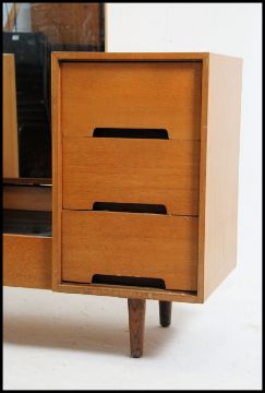 A 1960's Stag C Range dressing table - chest of drawers by John and Sylvia Reid. The oak chest of drawers having tall mirror above. Measures: 163cms high x 122cms wide x 46cms deep.