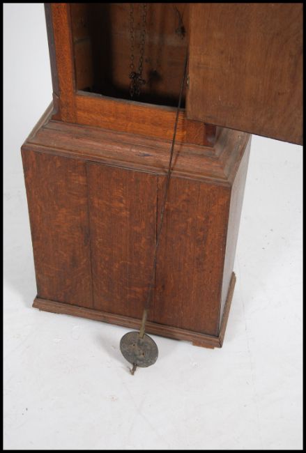 A 19th Century oak longcase grandfather clock having a painted face with notation for Alfred King, Chippenham. Complete with pendulum. Measures 198cms high x 43cms wide x 22cms deep.