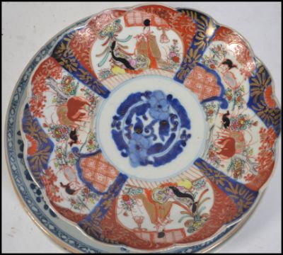 A group of 19th and 20th century chinese and Japanese ceramics to include three blue and white Chinese chargers etc please see images. Tallest measures 12cms high.