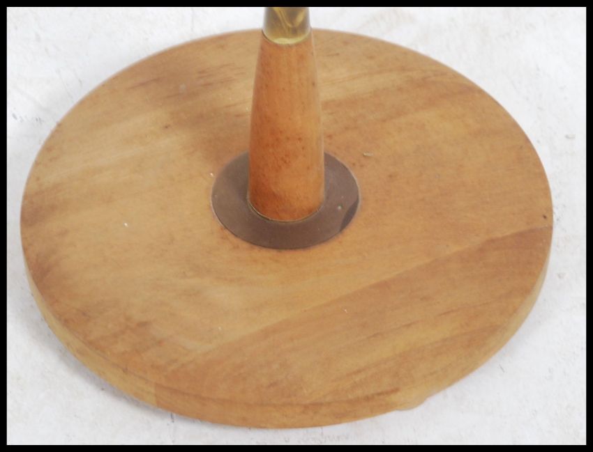 A 1970's retro teak wood standard lamp having terraced base with shaped teak wood bulbous upright with electrics atop. Measures: 157cms high.