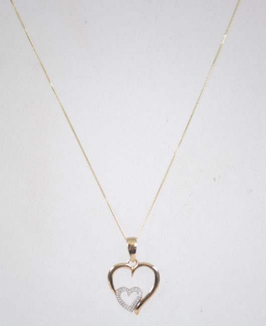 A 9ct gold heart pendant necklace and chain. The fine linked chain with interlocking heart pendants. Chain 42cms