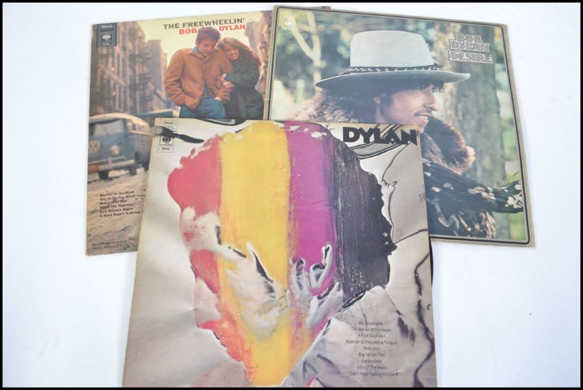 A small collection of long play LP vinyl records mainly by Bob Dylan to include Greatest Hits, Nashville Skyline, Bringing It All Back Home, Desire, Dylan, Freewheelin together with Joan Baez Farewell Angelina.