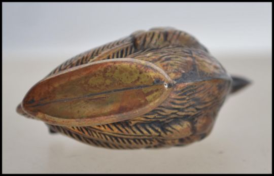 A brass cased vesta in the form of a wren / small bird having hinged centre. Measures 4cms high.