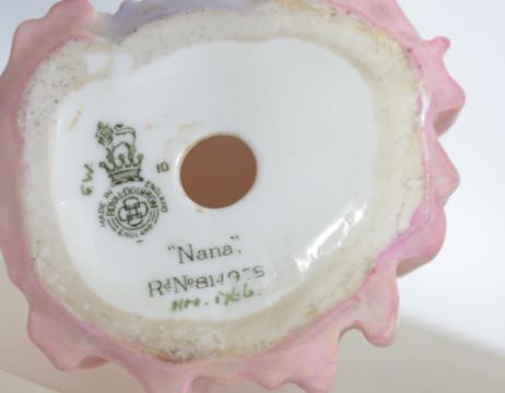 A Royal Doulton figure ' Nana ' HN1766 together with ' Granny's Shawl ' HN 1647 both stamped to base. Tallest measures 13cms high.