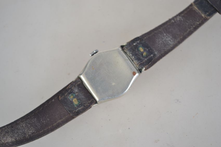 A vintage 20th century 1930's Art Deco TH Picard Fils La Chaux de Fonds wrist watch the gilt face having a subsidiary seconds dial on a black leather strap.