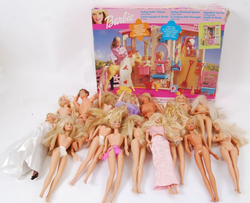 A collection of assorted Barbie dolls and playsets etc to include a Barbie Styling Stable playset, loose clothing and dolls etc.