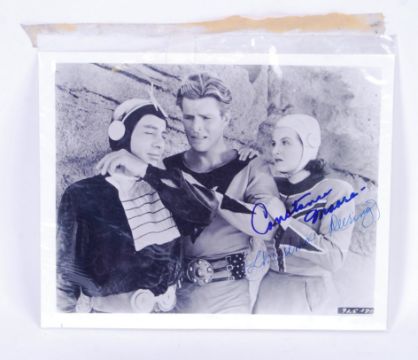 Two Flash Gordon autographs one of which is signed by Buster Crabble (1908-1983) the other by Constance Moore. These are both from the 1936 Flash Gordon series. Both 26cm long.