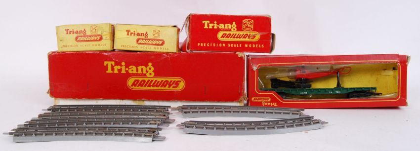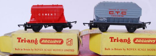 A collection of vintage Tri-ang Precision 00 gauge Scale Railway Models. Models include T.571 Grain Wagon, Mail Coach Set, T.278 Cement Wagon etc. All within original boxes.