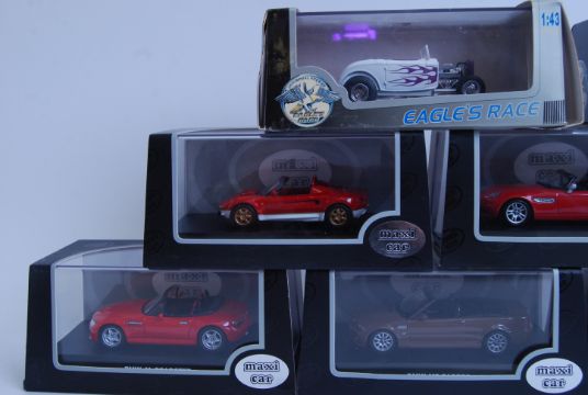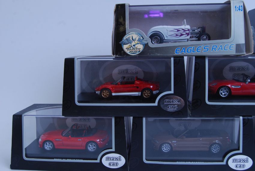 A collection of various precision diecast 1:43 model cars, x7 being Maxi Car Models, as well as 2x diecast Eagle's Race models. All mint, in original boxes.