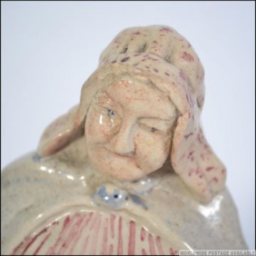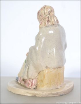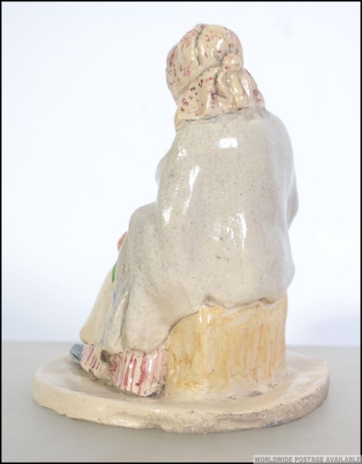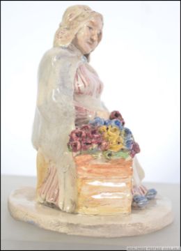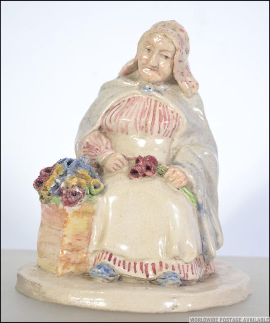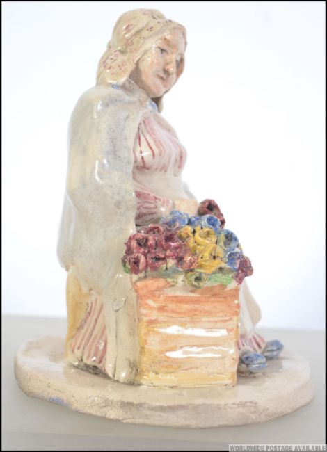 An early 20th century figure of a lady flower seller. marked to the interior J Carter 1928 possible Poole pottery. Measures:16cms high.
