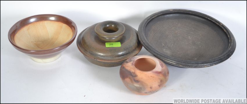 A collection of studio pottery dating from the 1970's to include a Barry Hayes Australian pot and others. Measures: 26cms wide.