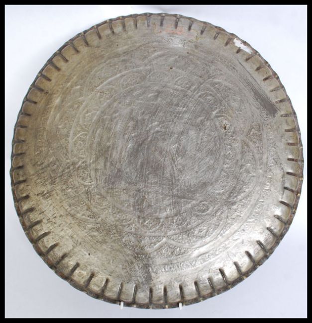 A late 19th / early 20th century brass on copper Indian / Asian brass wall charger. Engraved decorated with tradition scenes, with a decorative border. W58cm