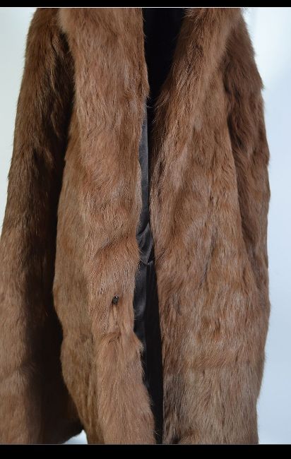 Two vintage fur coats one being a Rabbit Skin Fur Jacket and the other a vintage Brown Fur Coat with high collar.