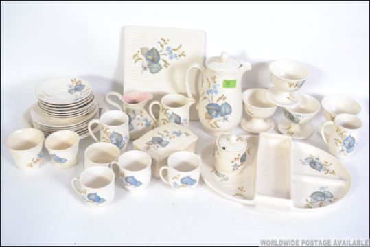 A retro chintzy part tea service by SylvaC, to include plates, cups, bowls, butter dish, coffee pot, creamers, cheese dish etc