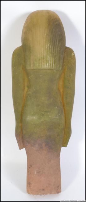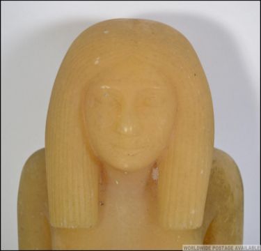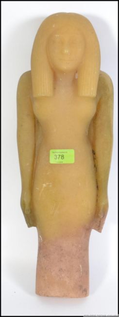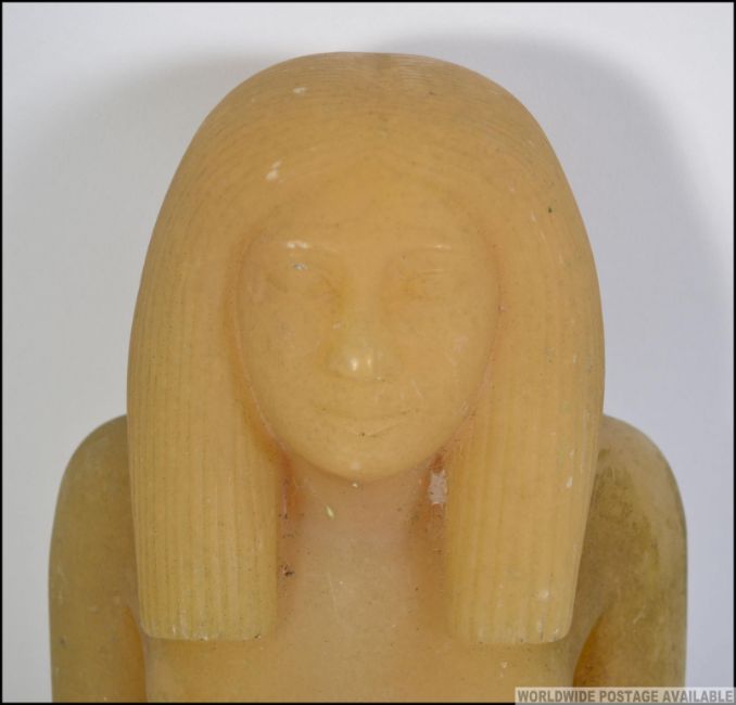 A 20th century large Egyptian relic style carved stone figure of a deity / female. Green translucent stone. Measures: 44cms high.
