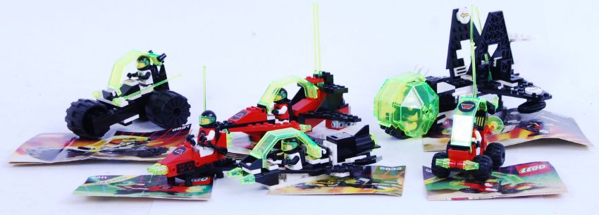 LEGO SPACE: A collection of 6x vintage Legoland Space Black Tron and M-Tron sets. 6851, 6811, 6877, 6832, 6833 and 6887. All appear fully made, with original instruction manuals. Note: From a genuine childhood collection of 1980's Lego sets. Including Space, Town, Legoland, Black Tron and others. The vendor has meticulously built each set to check for completeness and matched it to the correct instruction manuals. Unless stated, all sets should be presumed 100% complete. Buyers are reminded that no sets are personally checked by us, and so no guarantees can be given and the need to satisfy yourself to the completeness of sets still remains. Sets which are fully made may be disassembled for posting purposes and bagged accordingly. A wonderful collection of vintage Lego.