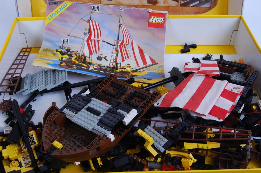 LEGO PIRATES: An original vintage Legoland Lego Pirates set 6285 Black Seas Barracuda ship. Within the original box, with instruction manuals. Box faded. Contents unchecked, but appear correct.