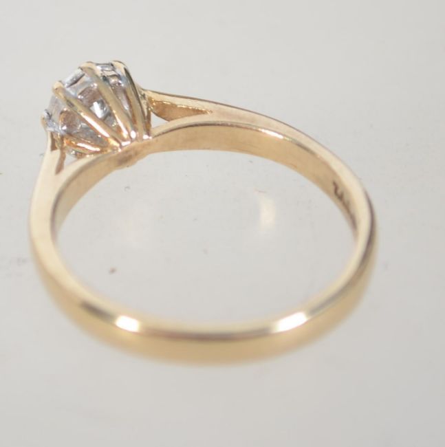 A 9ct gold single stone diamond ring being prong claw mounted and illusion set. The diamond approx 10pnts. Makers TAD, Stamped 375. Size J.