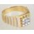 A hallmarked 18ct gold and diamond ring with ribbed tapering shoulders in the manner of Rolex with pave set diamond face. The 9 diamonds approx 25pnts. Hallmarked Sheffield. Makers Mark JI, date letter C. Weight 6.5g / Size P